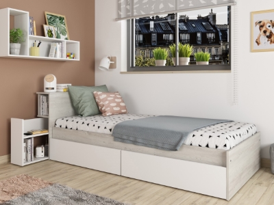 Rene linjer og oppbevaringsplass! Den innovative og stilige, vendbare Jazz sengen vil gjøre et statement på ditt barns soverom, samtidig som den fungerer som en praktisk løsning for å rydde vekk ting. Et perfekt flerbruksmøbel!