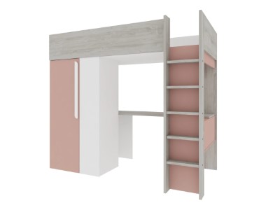 Optimaliser plassen med vår innovative Studio Loftseng, skapt spesielt for kompakte omgivelser. Denne smarte løsningen kombinerer en 2-dørs garderobe utstyrt med flere justerbare hyller og en praktisk hengestang, sammen med et stilfullt skriveområde strategisk plassert under sengen.