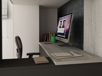 Studio Loftseng med integrert garderobe og skriveobord.