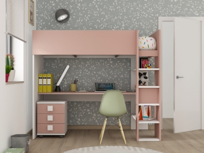 Loftsengen med Skrivebord rosa i størrelsen 90x200 er en av våre beste loftsenger. Den solide konstruksjonen fra vår spanske leverandør sikrer at sengen er trygg og solid for barna å sove i.