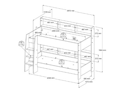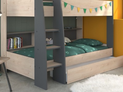 Dim Køyeseng med Skuff er et ypperlig tillegg til ethvert rom, enten for yngre barn eller tenåringer. Dens trendy høye køyesengdesign med glatte, buede linjer vil passe til et moderne soverom, og tillegg av hyller på topp- og bunnkøyene betyr at beboerne ikke vil slite med lagringsplass for bøker, biter og nips- flott for sengelesing!