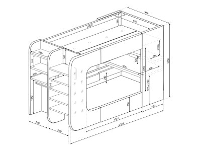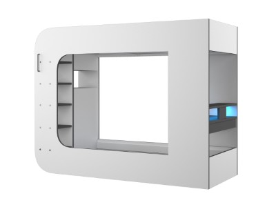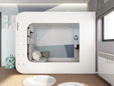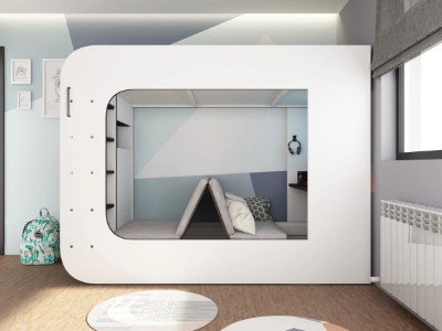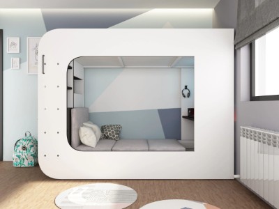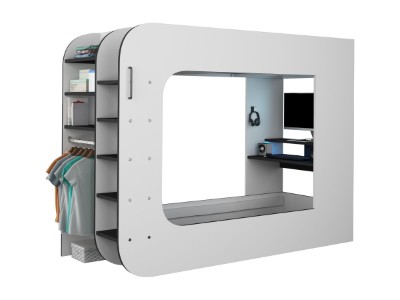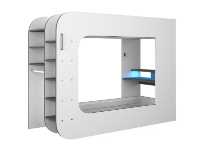 Under sengen er det et innebygd skrivebord med LED-belysning og vil garantert være det perfekte stedet for litt spilling. Den hevede hyllen og de åpne rommene er laget med tanke på spilling, og skjermene vil passe perfekt på toppen mens konsollene passer inn i de åpne rommene. Denne sengen tilbyr alt å sove og et sted å leke.