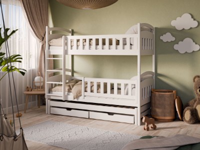 Den er laget i hvitmalt MDF og passer godt inn i de fleste barnerom. En budsjettvennlig køyeseng som kombinerer funksjon og stil.