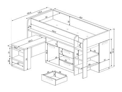Eksklusiv Halvhøy Seng med Skrivebord er en stilig seng som er designet for å tilføre eleganse og litt ekstra "wow-faktor" til ethvert barnerom!