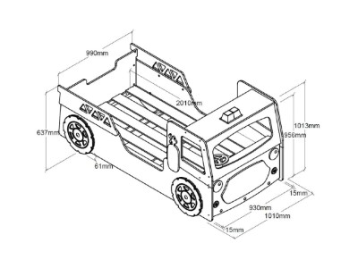 Brannbilsengen har en førerhytte, en hylle til dashbordet og et ratt som kan dreies. I tillegg har den LED-lys, og den kommer med spesielle trelameller som understøtter madrassen.