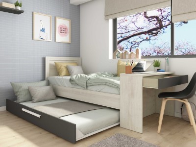 Stilig og plassbesparende. Skap et praktisk knutepunkt for barna dine med Junior Loftseng - perfekt for arbeid, hvile og lek!