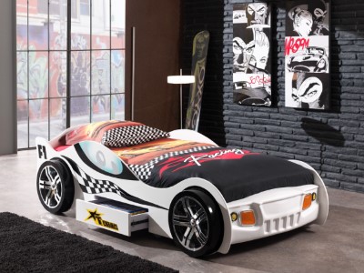 Leggetid blir dagens høydepunkt når denne kule bilen står parkert på barnerommet. Den praktiske spoileren bak kan brukes som hylle til nattlampen eller favorittboken.