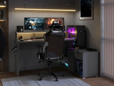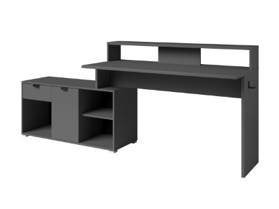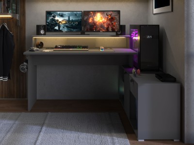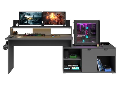 Med en smart kombinasjon av arbeidsflate og integrert oppbevaring gir bordet en ryddig og effektiv spill- eller arbeidsstasjon.